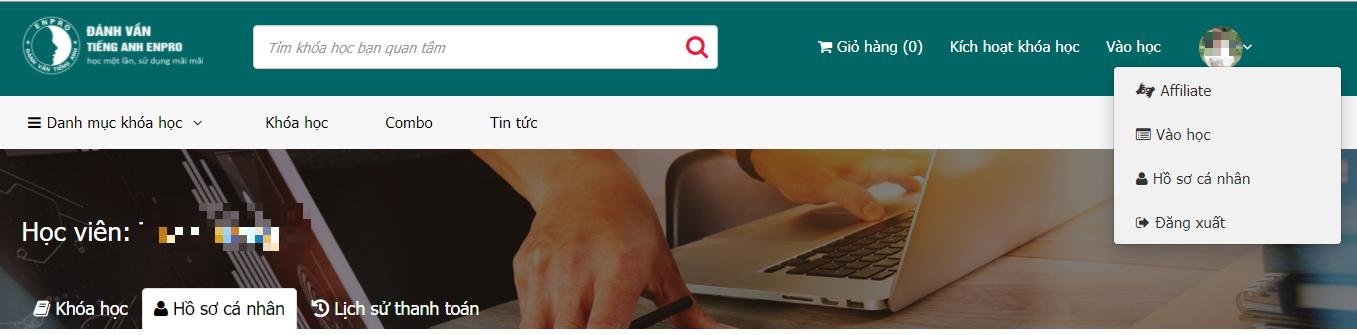 Khách hàng có thể đăng nhập trên website. Ấn vào "Hồ sơ cá nhân" để thay đổi, chỉnh sửa thông tin của mình.