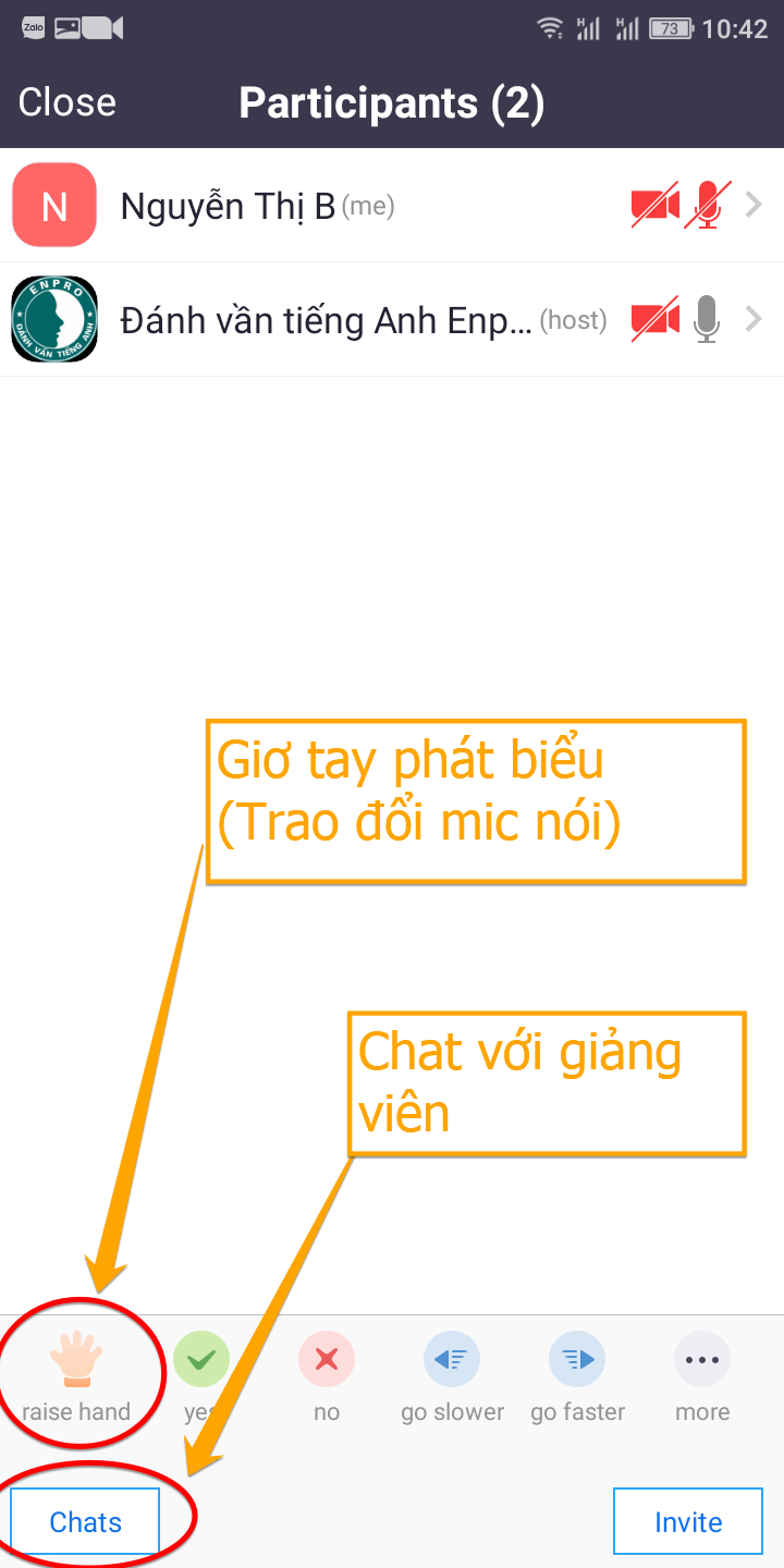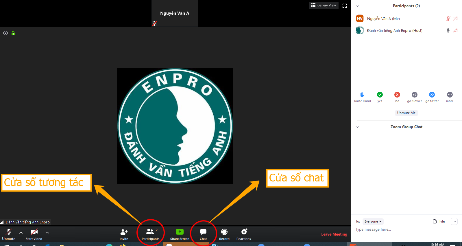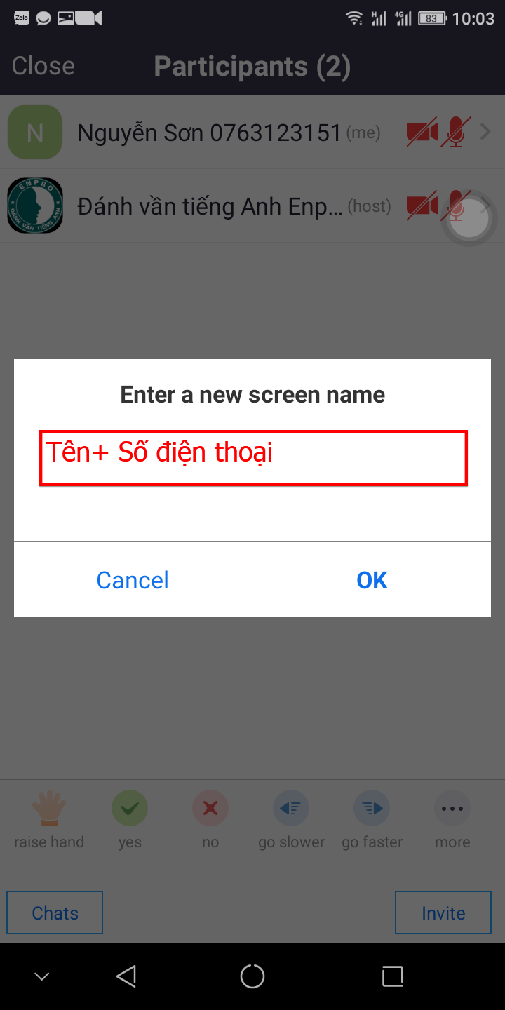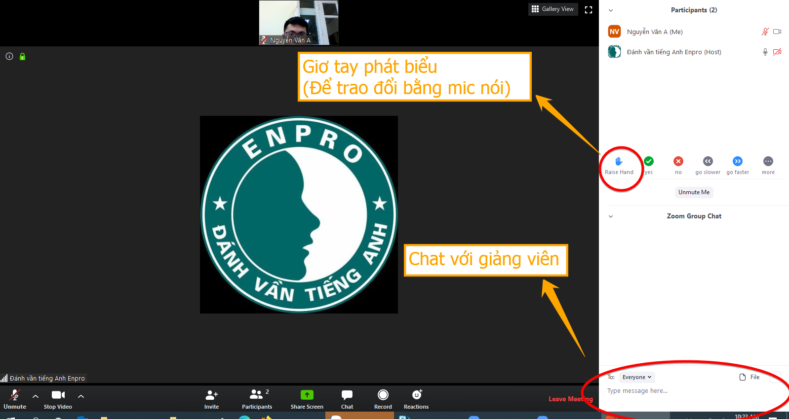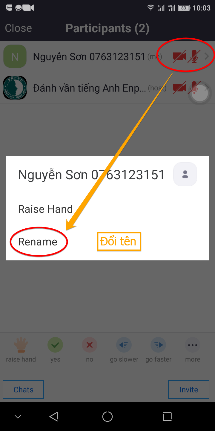 Bước 3: Giơ tay phát biểu-Chat và đổi tên: