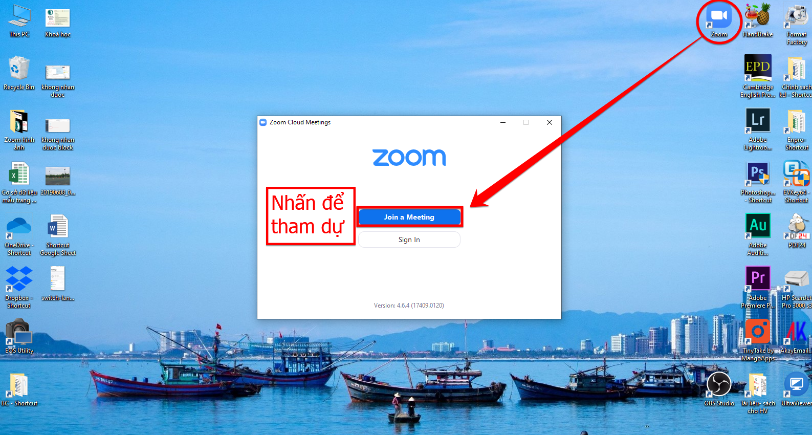 Bước 01. Click vào app Zoom trên màn hình